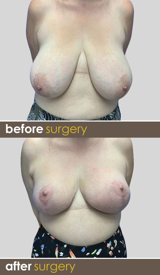 Operation duration: 3 hours. Anaesthesia: General. Hospital Stay: 1-2 days. time off work: Couple of weeks. Surgery results: Smaller, reshaped breasts. Overall result visible in 6 months.