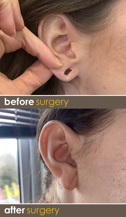 Mr Javaid provides surgery for repair of Split Earlobe. Compared to other cosmetic procedures, the Split Earlobe Repair technique is quite simple; any excess tissue is removed to neaten up the area before the two open sides are carefully stitched together with very fine dissolvable stitches.